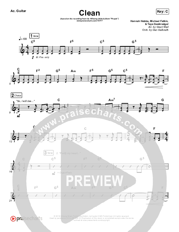 Download the Rhythm Chart for Clean by Hillsong UNITED, from the album People. This song was arranged by Grant Wall / Daniel Galbraith in the key of C, D.