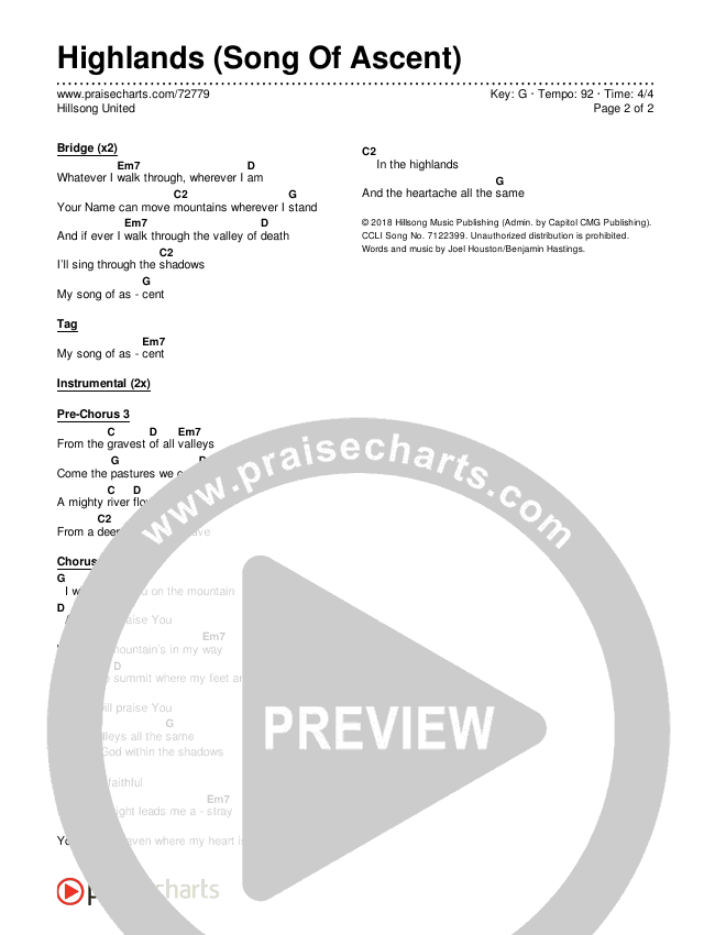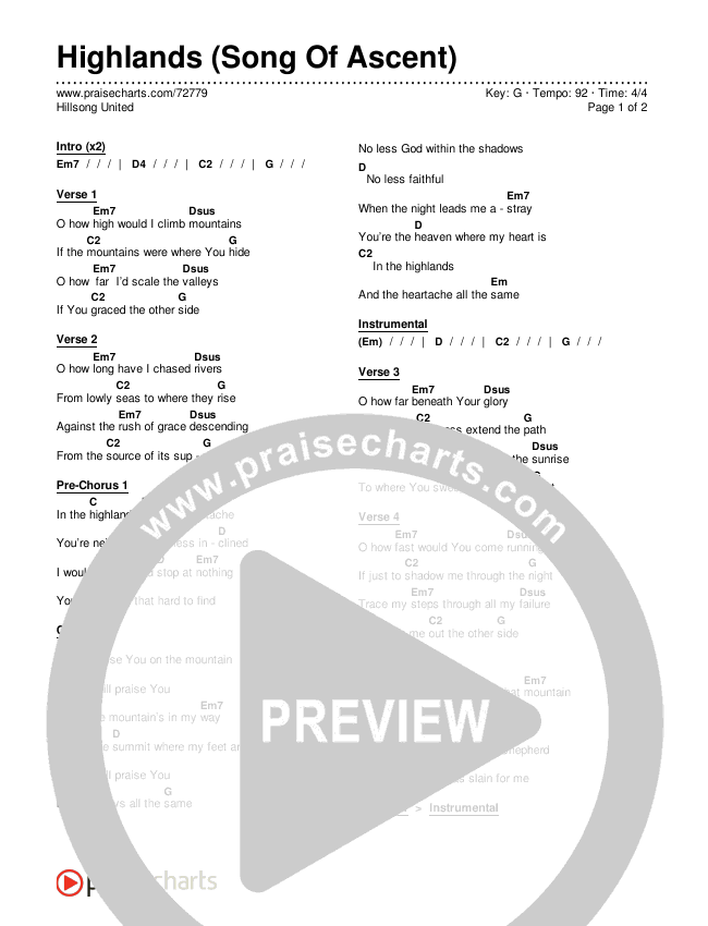 Highlands (Song Of Ascent) Chords PDF (Hillsong UNITED)
