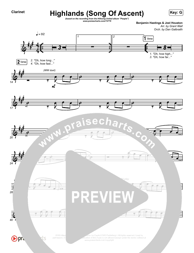 Download the Orchestration wind parts for Highlands (Song Of Ascent) by Hillsong UNITED, from the album People. This song was arranged by Grant Wall / Daniel Galbraith in the key of F, G.