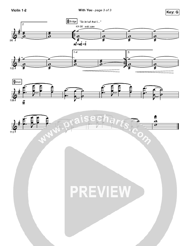 Download the Violin sheet music for With You by Elevation Worship, from the album At Midnight. This song was arranged by Erik Foster / Daniel Galbraith in the key of Ab, G.