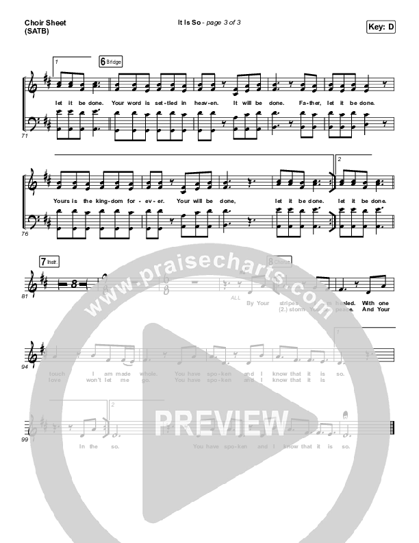Download the Choir Sheet for It Is So by Elevation Worship, from the album At Midnight. This song was arranged by Daniel Galbraith in the key of D, Eb.