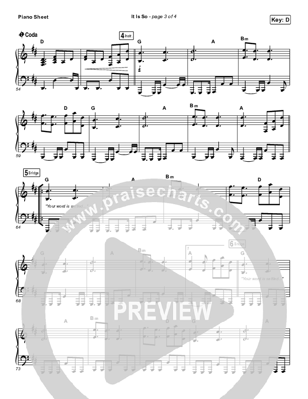 Download the piano sheet for It Is So by Elevation Worship, from the album At Midnight. This song was arranged by Daniel Galbraith in the key of D, Eb.