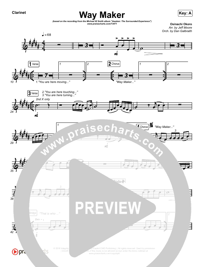 Download the Orchestration wind parts for Way Maker (Live) by Michael W. Smith, from the album Awaken: The Surrounded Experience. This song was arranged by Jeff Moore in the key of A, Ab, Bb.