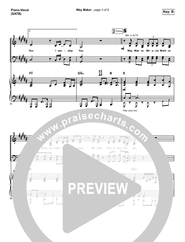 Download the sheet music for Way Maker by Sinach, from the album Way Maker - Single. This song was arranged by Erik Foster / Daniel Galbraith in the key of B, C.