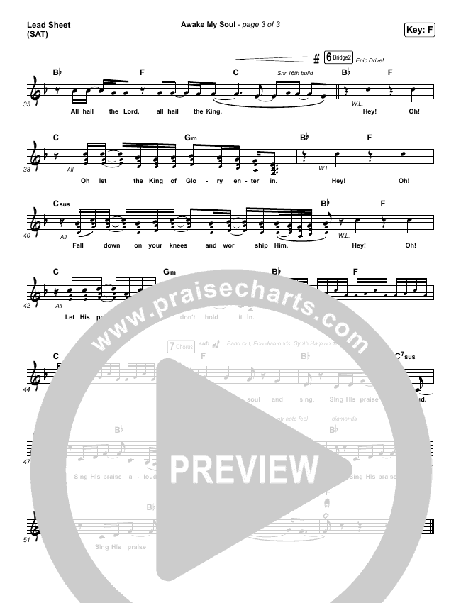 Download the sheet music for Awake My Soul by Hillsong Worship, from the album Awake (Deluxe). This song was arranged by Jeff Moore in the key of E, F.