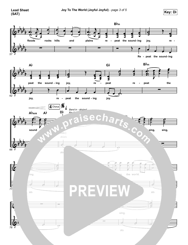 Download the sheet music for Joy To The World (Joyful Joyful) by Phil Wickham, from the album Christmas. This song was arranged by Daniel Galbraith in the key of Bb, C, Db.