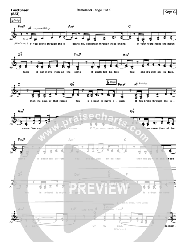Download the sheet music for Remember by Bryan & Katie Torwalt, from the album Remember - Single. This song was arranged by Ed Kerr / Grant Wall in the key of C, D.