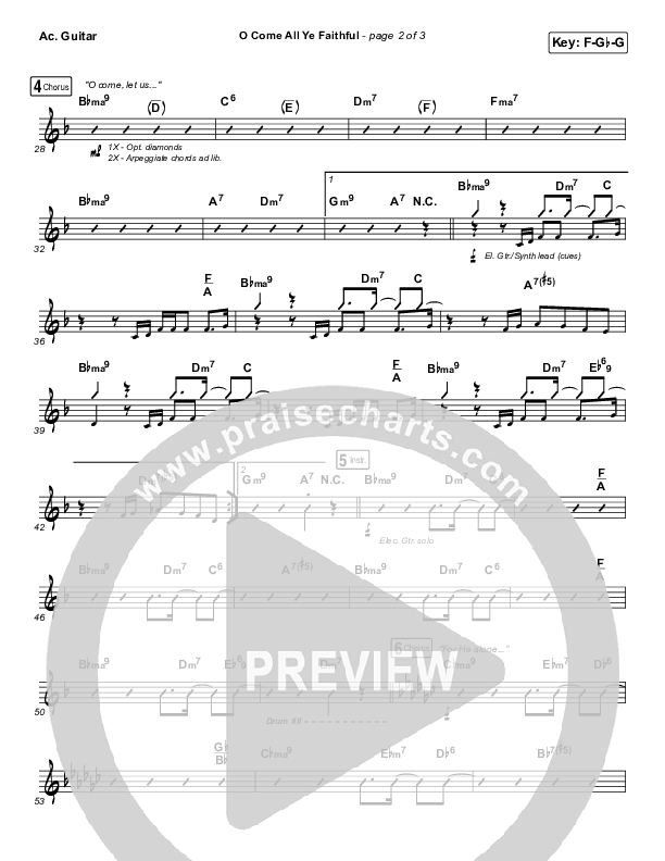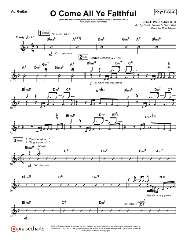 Download the Acoustic Guitar sheet music for O Come All Ye Faithful by Planetshakers, from the album Christmas Vol 2. This song was arranged by Dustin Loehrs / Rob Adams in the key of Eb, F.