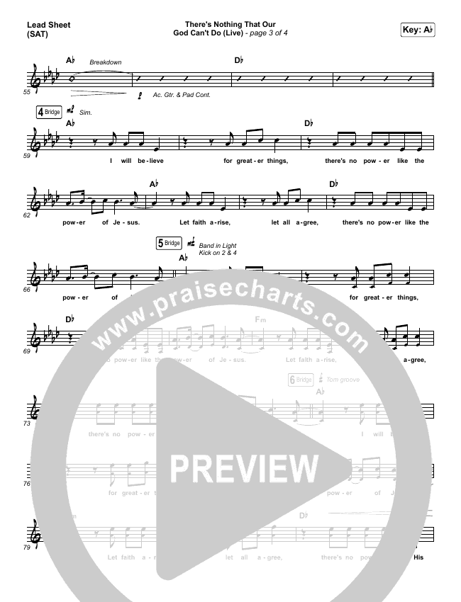 Download the sheet music for There's Nothing That Our God Can't Do (Live) by Passion / Kristian Stanfill, from the album Roar (Live From Passion 2020). This song was arranged by Daniel Galbraith in the key of Ab, D, E, Eb, F, G.