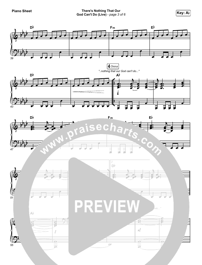 Download the piano sheet for There's Nothing That Our God Can't Do (Live) by Passion / Kristian Stanfill, from the album Roar (Live From Passion 2020). This song was arranged by Daniel Galbraith in the key of Ab, D, E, Eb, F, G.