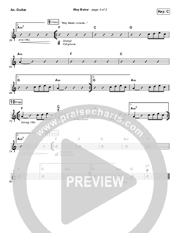 Download the Acoustic Guitar sheet music for Way Maker (Live At Bethel) by Paul McClure / Hannah McClure / The McClures, from the album Way Maker (Live At Bethel). This song was arranged by Dustin Loehrs / Daniel Galbraith in the key of C, Db, G.