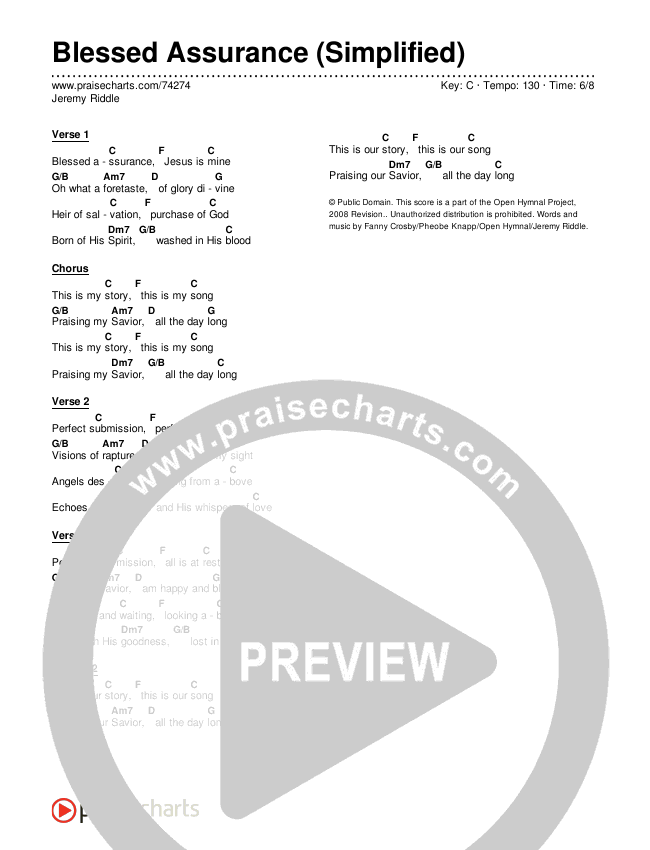 Download the PDF Chord Charts for Blessed Assurance (Simplified) by Jeremy Riddle, from the album Simplified Worship.