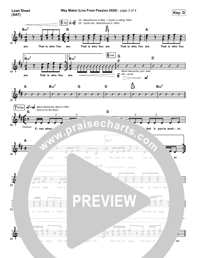 Download the Orchestration for Way Maker (Live From Passion 2020) by Passion / Kristian Stanfill / Cody Carnes / Kari Jobe, from the album Roar (Live From Passion 2020). This song was arranged by Wayne Yankie / Grant Wall / Daniel Galbraith in the key of D, Db.