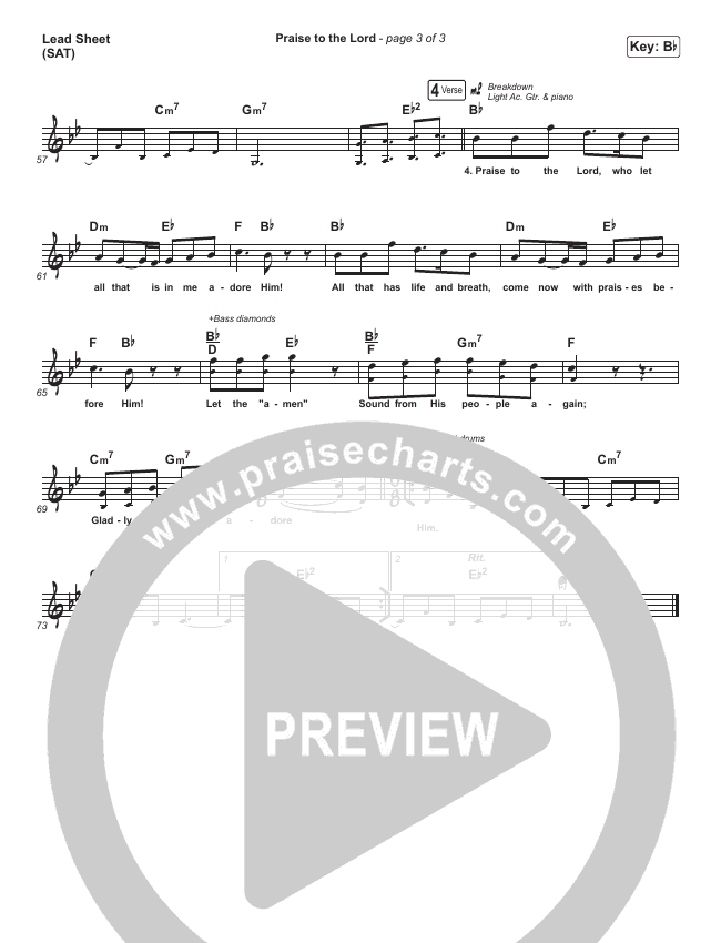 Download the sheet music for Praise To The Lord by Shane & Shane/The Worship Initiative, from the album Hymns In The Round. This song was arranged by Lee Marcum in the key of B, Bb, Eb, G.