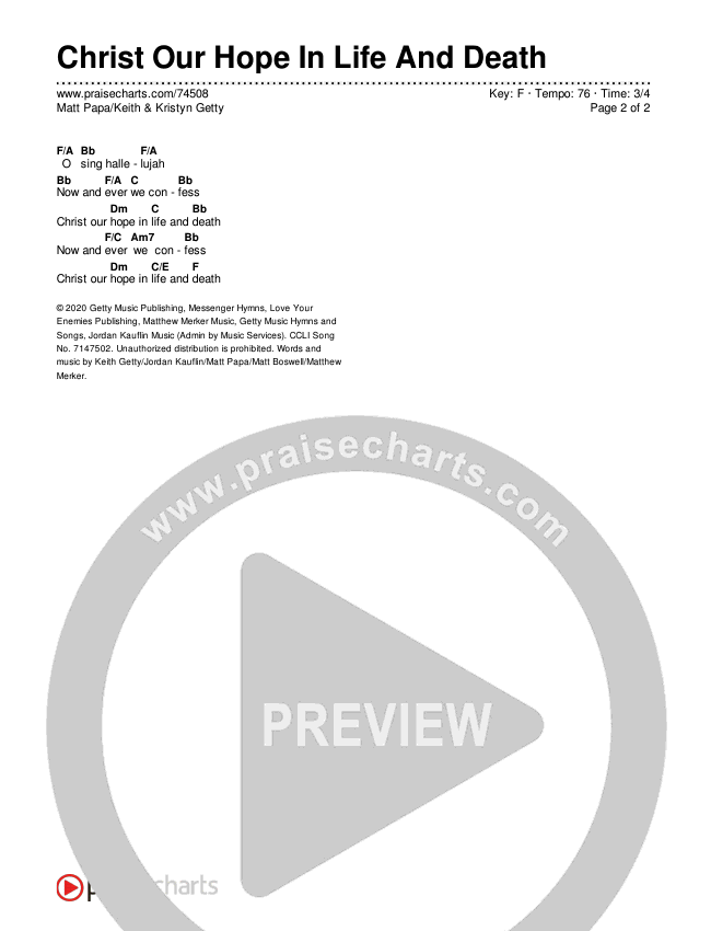 Christ Our Hope In Life And Death Chords & Lyrics (Matt Papa / Keith & Kristyn Getty)
