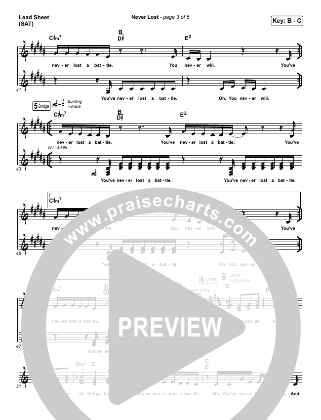 Download the sheet music for Never Lost by Elevation Worship / Tauren Wells, from the album Graves Into Gardens. This song was arranged by Dustin Loehrs in the key of A, B.