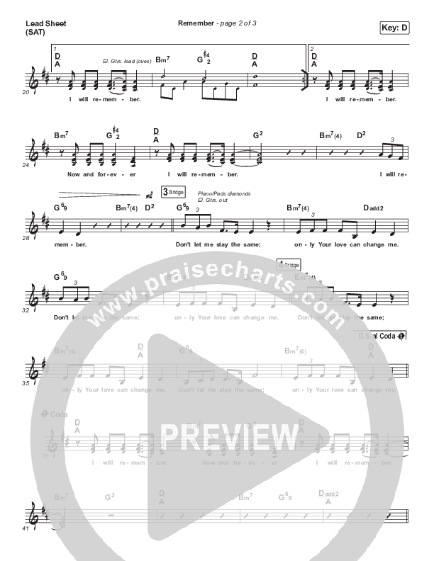 Download the sheet music for Remember by Steffany Gretzinger, from the album Forever Amen. This song was arranged by Grant Wall in the key of D, Eb.