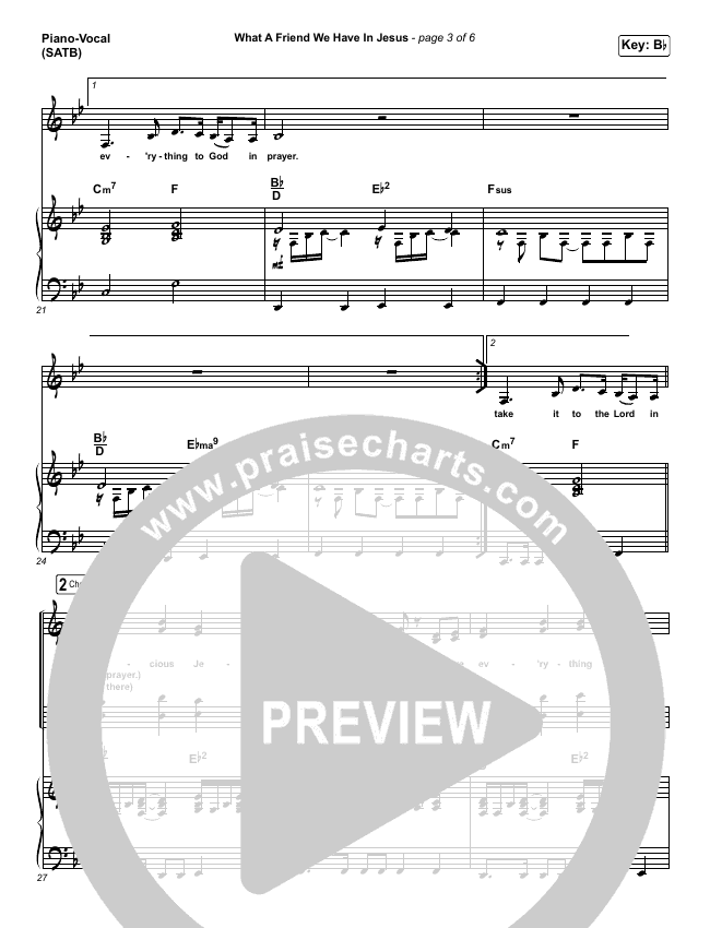 Download the sheet music for What A Friend We Have In Jesus by Shane & Shane/The Worship Initiative / Hannah Hardin, from the album The Worship Initiative Volume 21. This song was arranged by Grant Wall / Daniel Galbraith in the key of Bb, C.