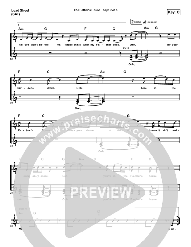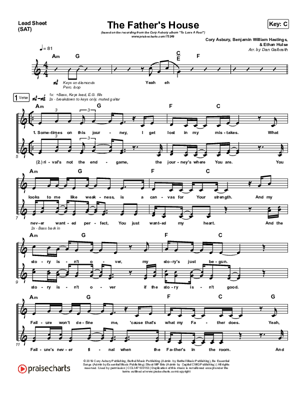 Download the sheet music for The Father's House by Cory Asbury, from the album To Love A Fool. This song was arranged by Daniel Galbraith in the key of C, Db.