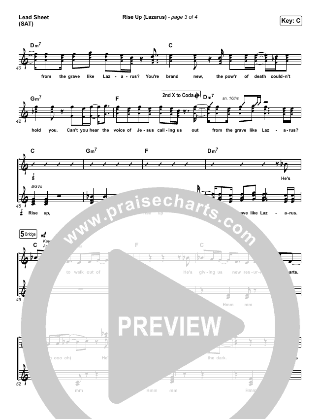 Rise Up (Lazarus) Sheet Music PDF (CAIN)