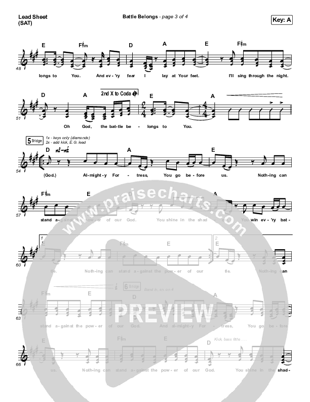 Download the sheet music for Battle Belongs by Phil Wickham, from the album Hymn Of Heaven. This song was arranged by Daniel Galbraith in the key of A, B, Bb, C, Db, G.