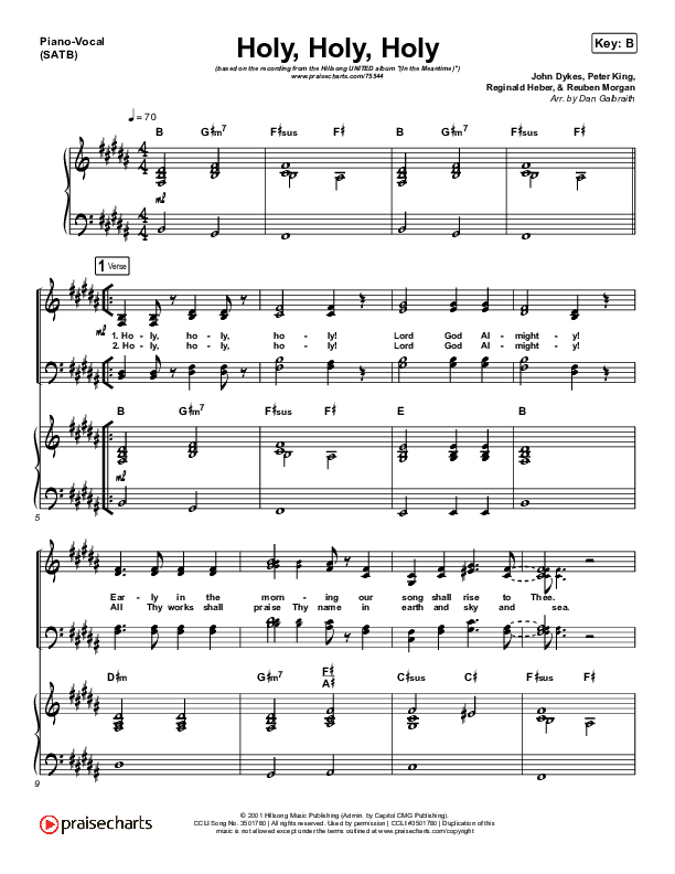 Download the sheet music for Holy Holy Holy (Live) by Hillsong UNITED, from the album (in the meantime). This song was arranged by Daniel Galbraith in the key of B, C.