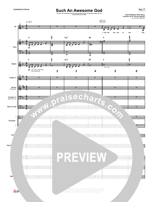 Download the Orchestration for Such An Awesome God by Shane & Shane/The Worship Initiative / Dinah Wright / Davy Flowers, from the album The Worship Initiative Volume 22. This song was arranged by Daniel Galbraith in the key of E, F.