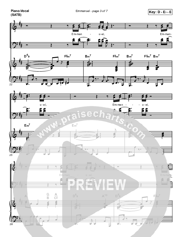 Download the sheet music for Emmanuel by Norman Hutchins, from the album Emmanuel: Norman Hutchins & JDI Christmas. This song was arranged by Dustin Loehrs / Daniel Galbraith in the key of D, Db.