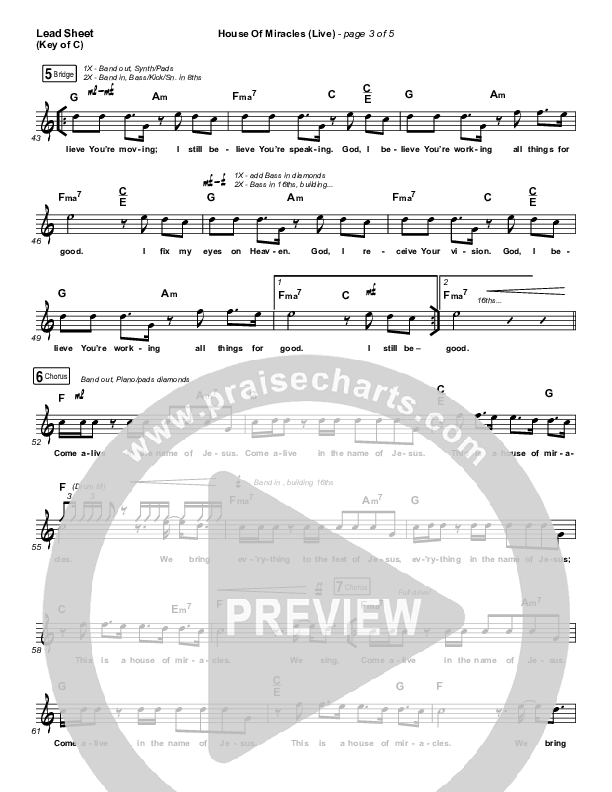 Download the sheet music for House Of Miracles (Live) by Brandon Lake, from the album House Of Miracles (Live). This song was arranged by Daniel Galbraith in the key of Bb, C.