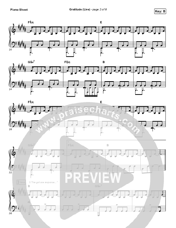Download the piano sheet for Gratitude (Live) by Brandon Lake, from the album House Of Miracles (Live). This song was arranged by Grant Wall / Daniel Galbraith in the key of A, B, Bb, G, Gb.