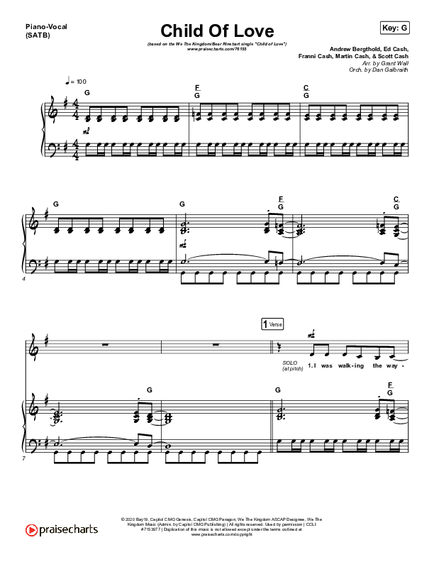 Download the sheet music for Child Of Love by We The Kingdom / Bear Rinehart, from the album Child Of Love - Single. This song was arranged by Daniel Galbraith / Grant Wall in the key of F, G.