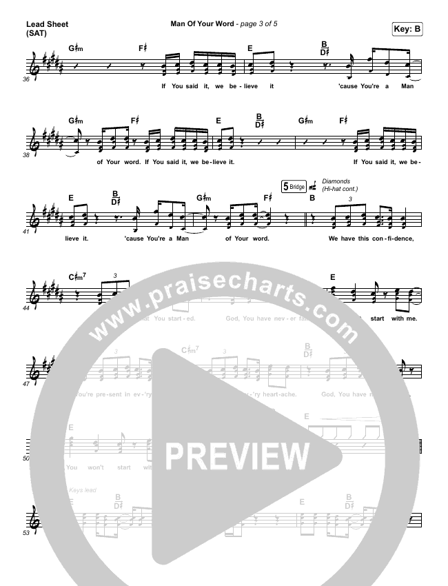Download the sheet music for Man Of Your Word by Maverick City Music, from the album Maverick City Vol 3 Part 1. This song was arranged by Erik Foster / Daniel Galbraith in the key of B, C.
