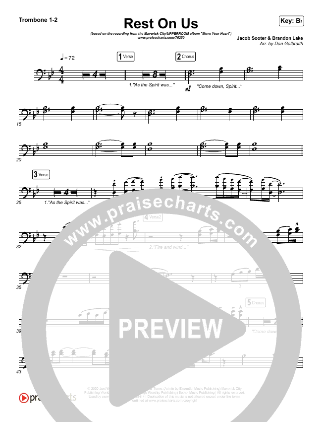 Download the Orchestration brass parts for Rest On Us by Maverick City Music / UPPERROOM / Brandon Lake / Eniola Abioye, from the album Move Your Heart EP. This song was arranged by Daniel Galbraith in the key of Bb, C.