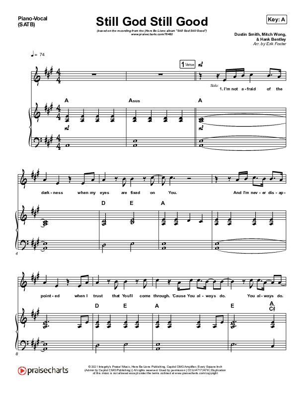Download the sheet music for Still God Still Good by Here Be Lions, from the album Still God Still Good. This song was arranged by Erik Foster in the key of A, B.