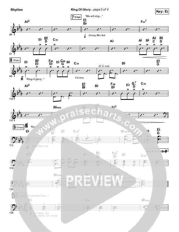 Download the Rhythm Chart for King Of Glory (Live) by CeCe Winans, from the album Believe For It (Deluxe). This song was arranged by Erik Foster in the key of D, Eb.