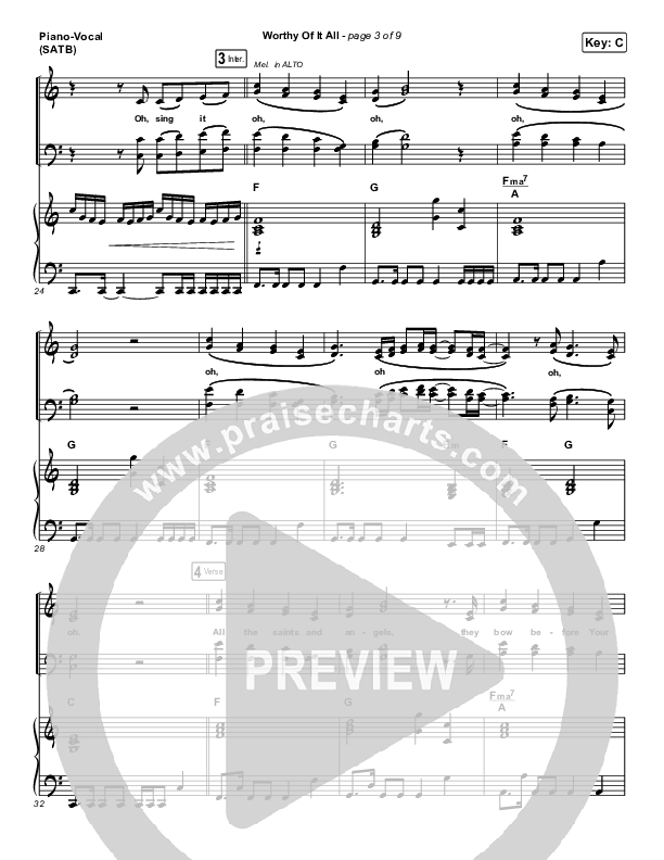 Download the sheet music for Worthy Of It All (Live) by The Worship Initiative / Shane & Shane, from the album The Worship Initiative Volume 25. This song was arranged by Dustin Loehrs / Daniel Galbraith in the key of Bb, C.