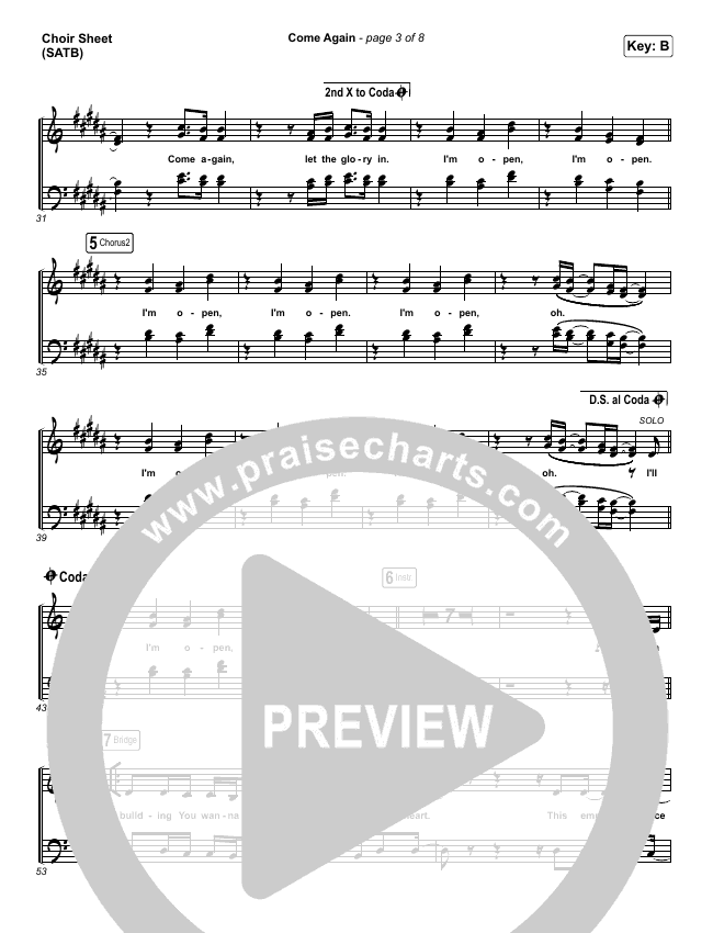 Download the Choir Sheet for Come Again by Maverick City Music / Elevation Worship / Chandler Moore / Brandon Lake, from the album Old Church Basement. This song was arranged by Dustin Loehrs / Daniel Galbraith in the key of B, Bb.