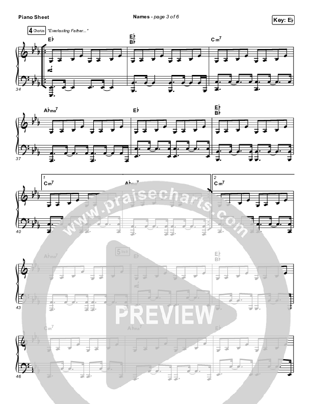 Download the piano sheet for Names by Maverick City Music / Elevation Worship / Tiffany Hudson, from the album Old Church Basement. This song was arranged by Erik Foster / Daniel Galbraith in the key of E, Eb.