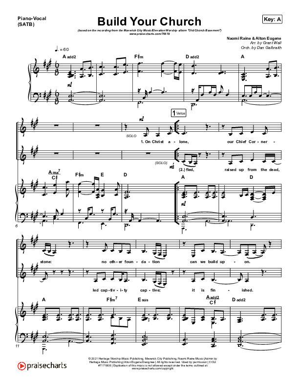 Download the sheet music for Build Your Church by Maverick City Music / Elevation Worship / Chris Brown / Naomi Raine, from the album Old Church Basement. This song was arranged by Grant Wall / Daniel Galbraith in the key of A, Ab.