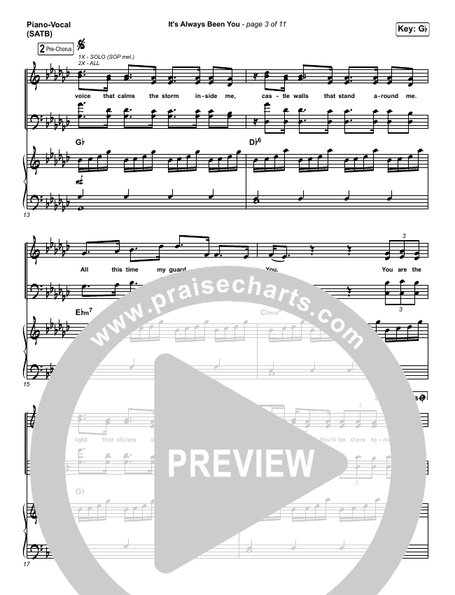 Download the sheet music for It's Always Been You by Phil Wickham, from the album Hymn Of Heaven. This song was arranged by Grant Wall / Daniel Galbraith in the key of F, Gb.