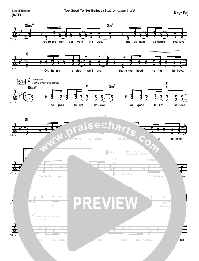 Too Good To Not Believe (Live) Sheet Music PDF (Bethel Music / Brandon Lake)