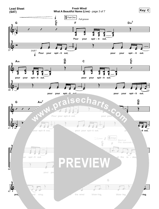 Download the sheet music for Fresh Wind / What A Beautiful Name (Live) by Hillsong Worship, from the album Fresh Wind / What A Beautiful Name. This song was arranged by Grant Wall in the key of C, D.