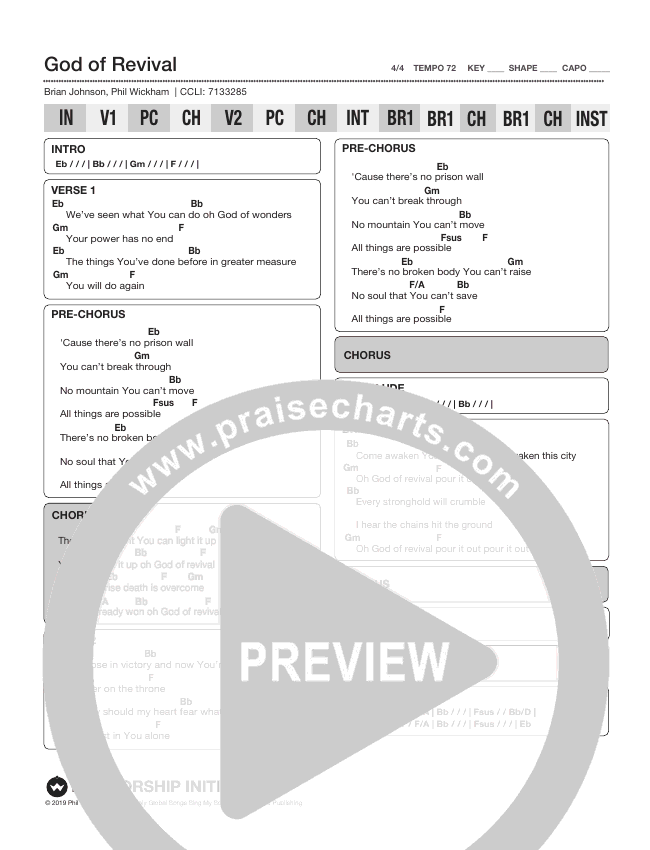 God Of Revival (Live) Chord Chart (The Worship Initiative / Shane & Shane / Dinah Wright)