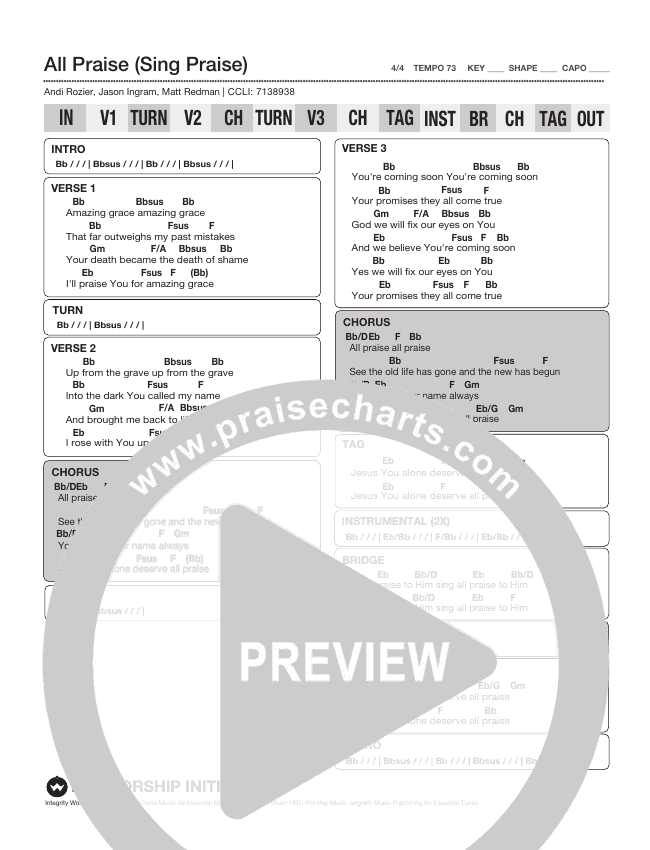 All Praise (Sing Praise) (Live) Chords PDF (The Worship Initiative / Shane & Shane / Bethany Barnard)