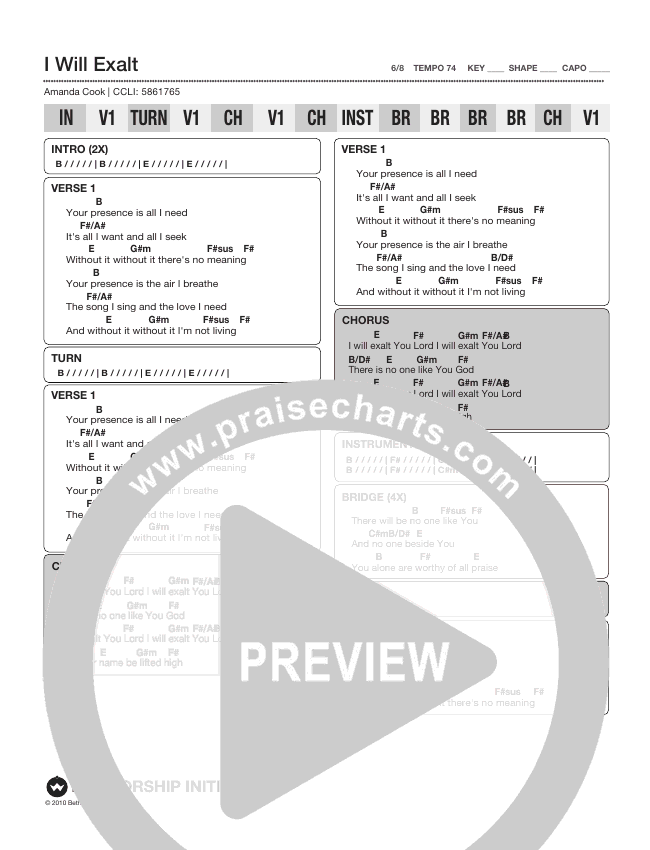 Download the PDF Chord Charts for I Will Exalt (Live) by The Worship Initiative / Shane & Shane / Bethany Barnard, from the album The Worship Initiative Volume 26.