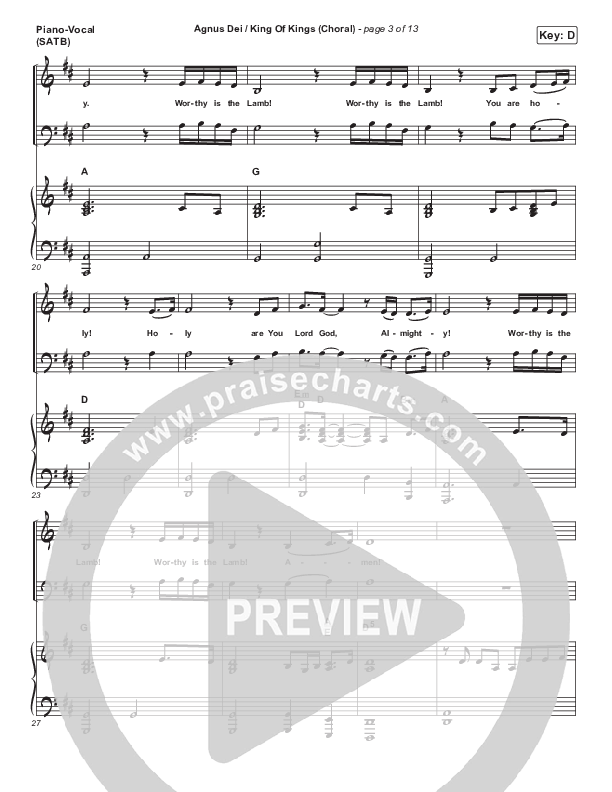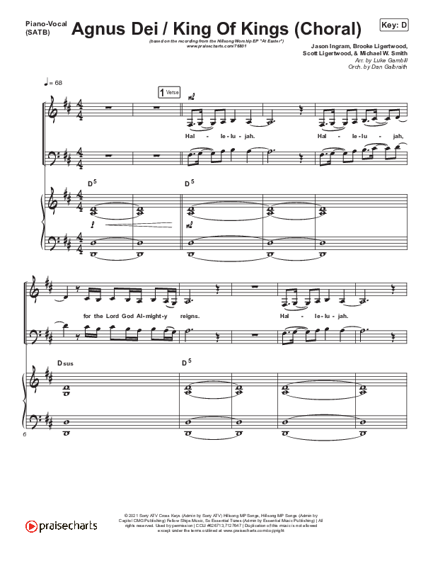 Agnus Dei / King Of Kings (Choral Anthem SATB) Sheet Music PDF (Hillsong Worship / Arr. Luke Gambill)