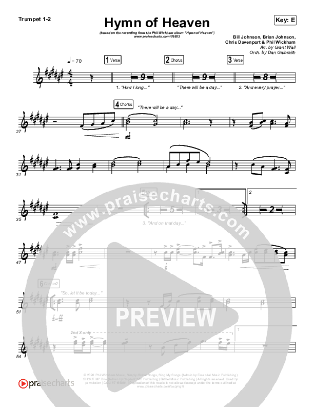 Download the Orchestration brass parts for Hymn Of Heaven by Phil Wickham, from the album Hymn Of Heaven. This song was arranged by Grant Wall / Daniel Galbraith in the key of C, D, E, Eb.