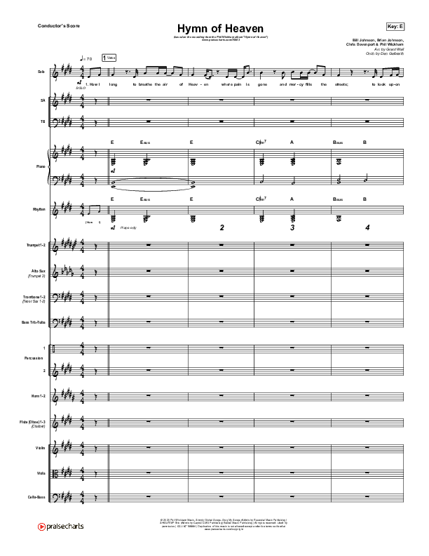 Download the Orchestration for Hymn Of Heaven by Phil Wickham, from the album Hymn Of Heaven. This song was arranged by Grant Wall / Daniel Galbraith in the key of C, D, E, Eb.
