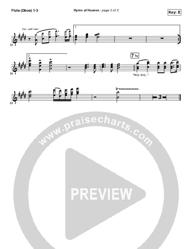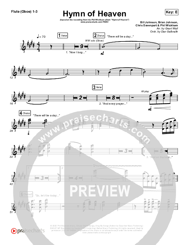 Download the Flute/Oboe sheet music for Hymn Of Heaven by Phil Wickham, from the album Hymn Of Heaven. This song was arranged by Grant Wall / Daniel Galbraith in the key of C, D, E, Eb.