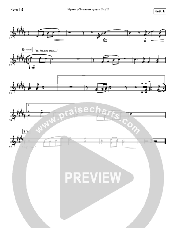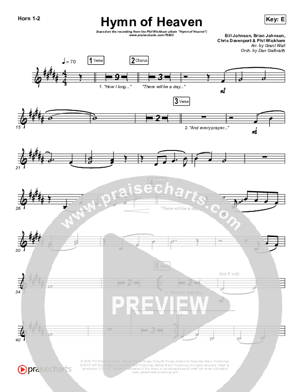 Download the French Horn sheet music for Hymn Of Heaven by Phil Wickham, from the album Hymn Of Heaven. This song was arranged by Grant Wall / Daniel Galbraith in the key of C, D, E, Eb.